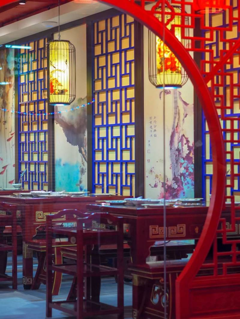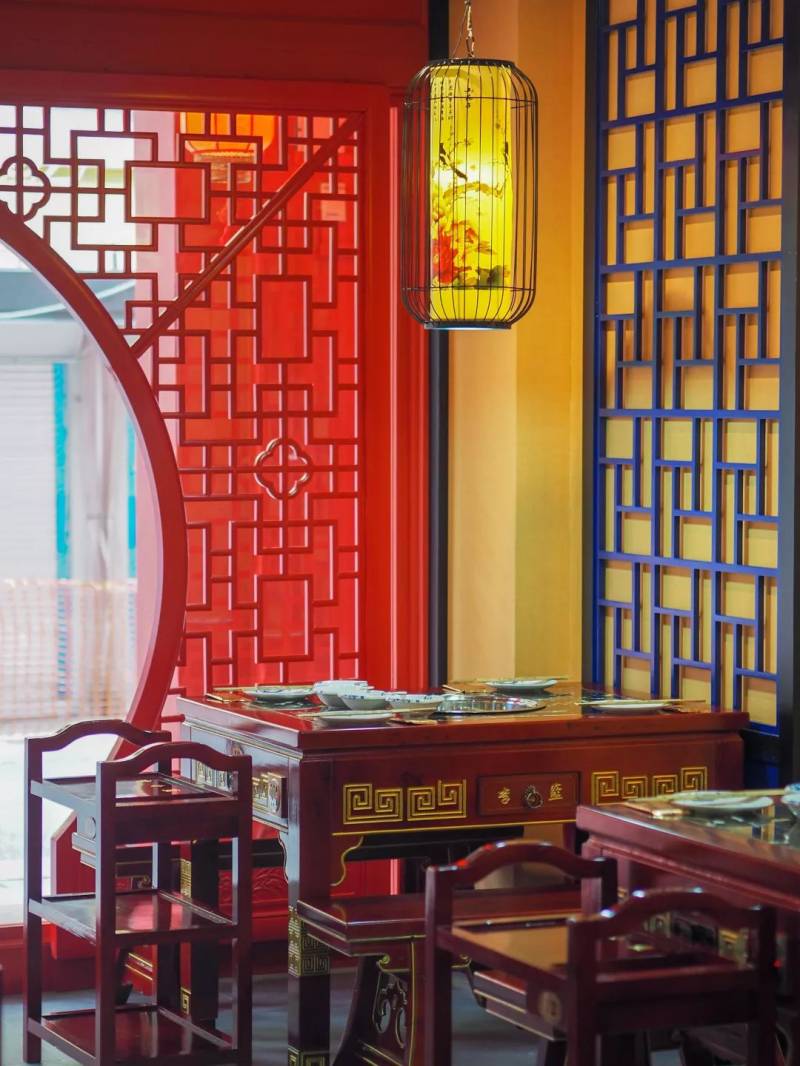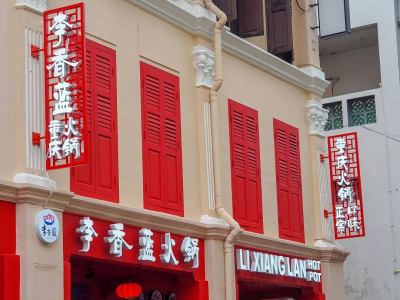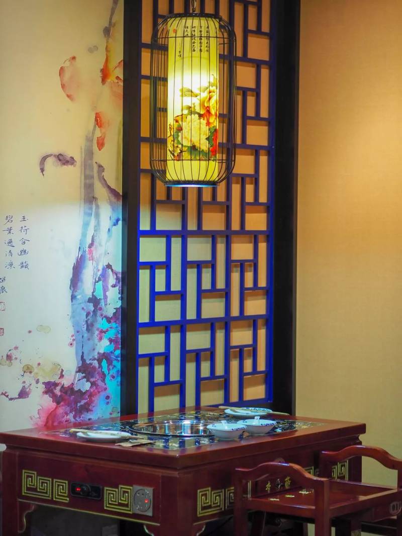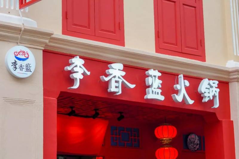 这家名为“李香蓝”的火锅店来自重庆,这家火锅店至今在中国有30多家分店。风格都是以红色和蓝色为主,古色古香。