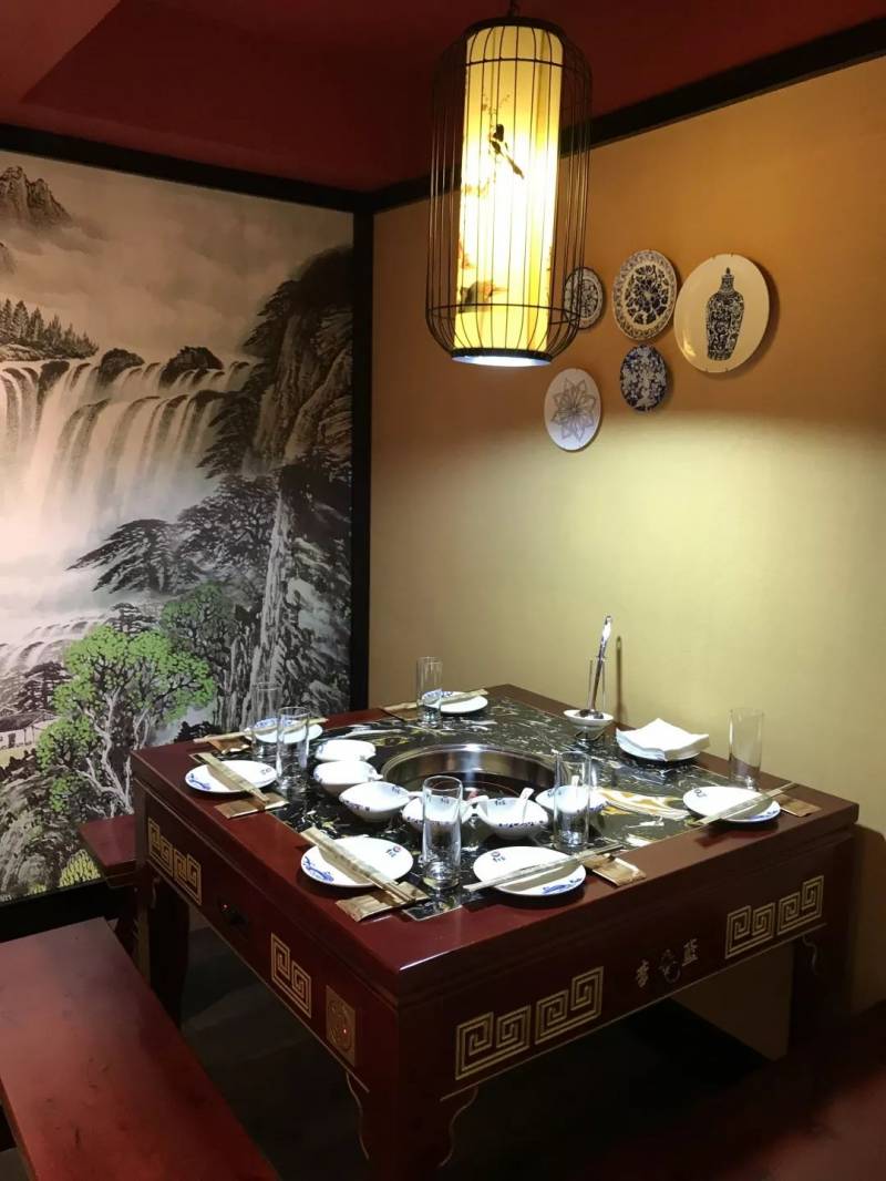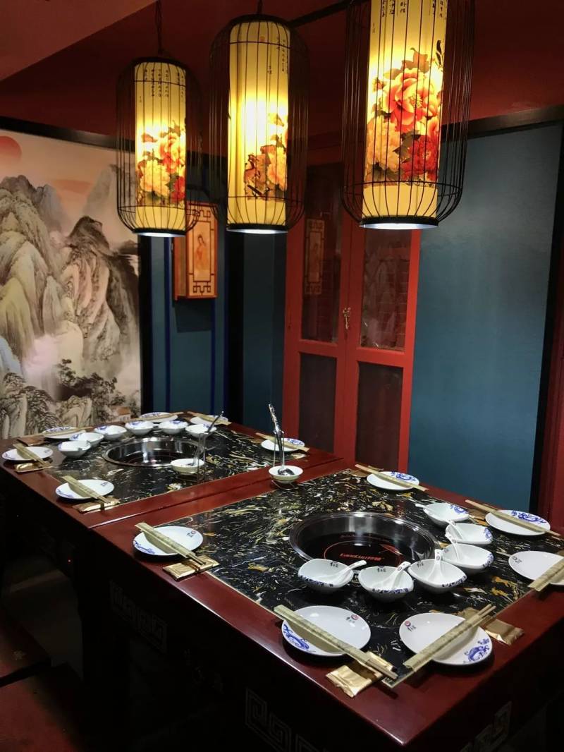 这家火锅店有两层楼,楼上是能容纳不同人数的包厢,从6人到12人不等,每个包厢都各有特色。