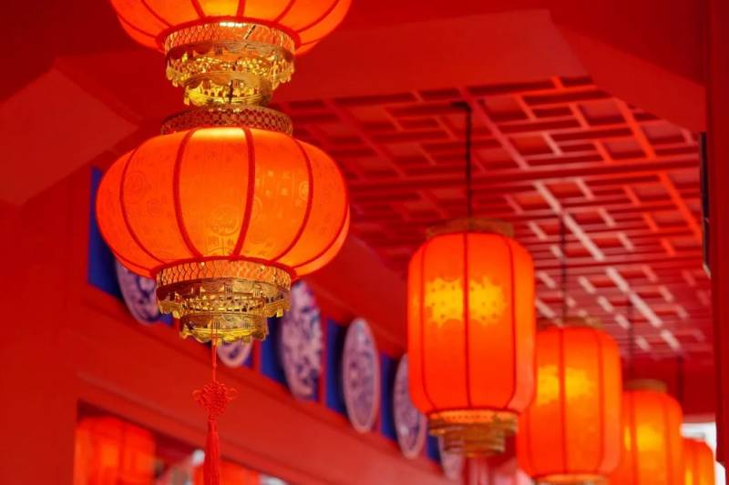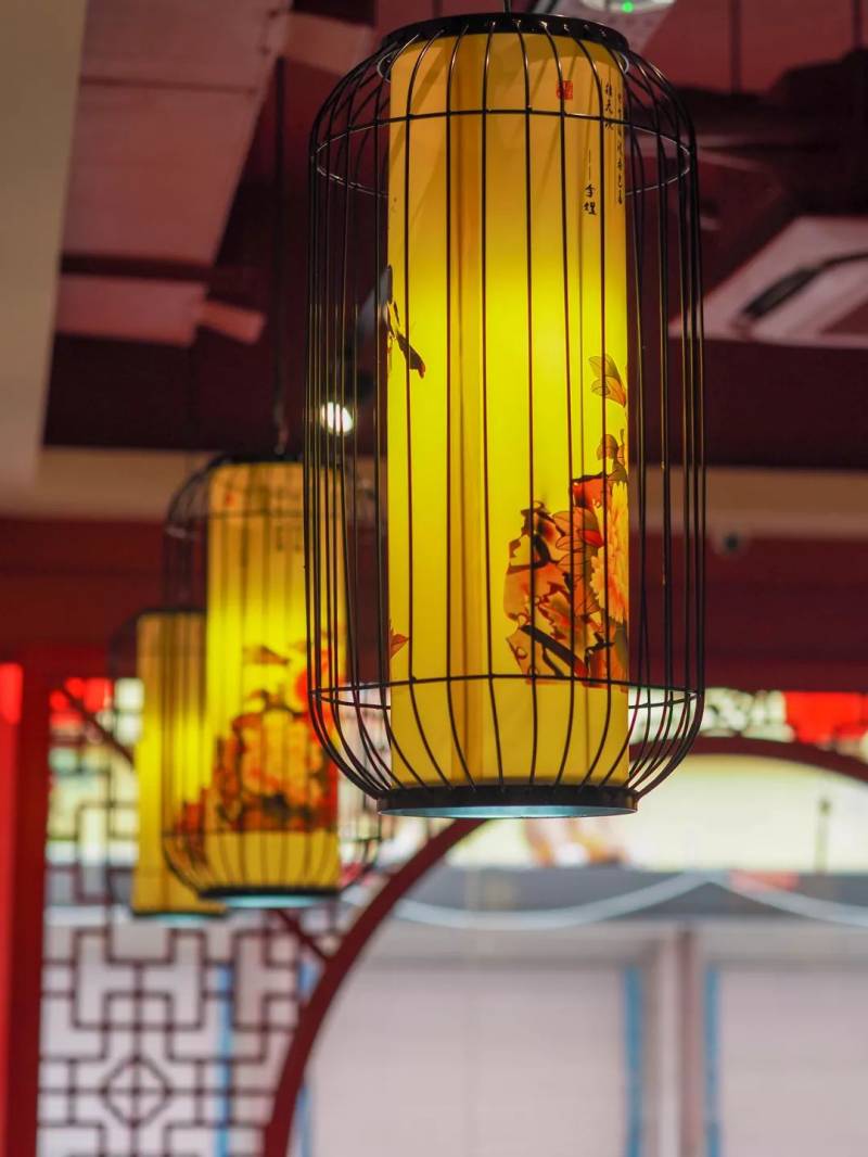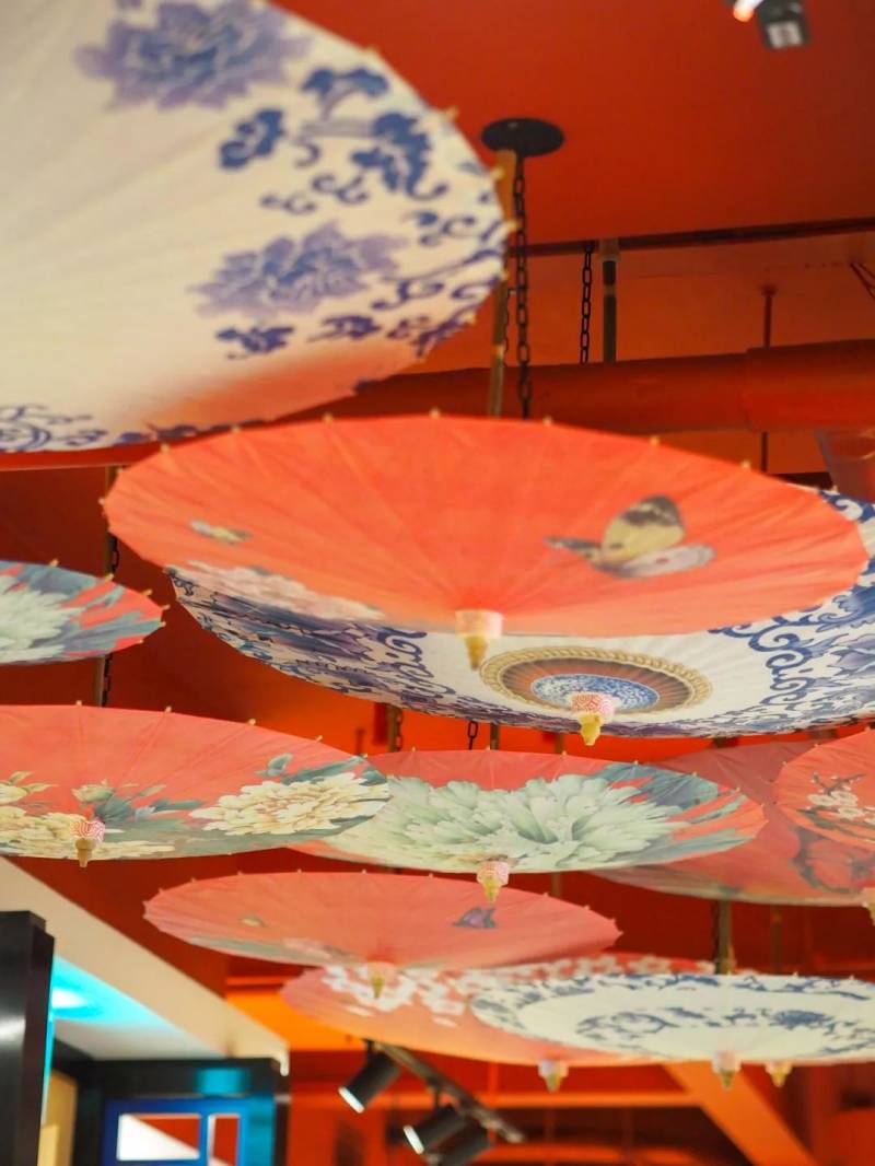 店内运用了很多中式元素浓烈的灯笼和纸伞的元素,体现出传统文化的审美意蕴。