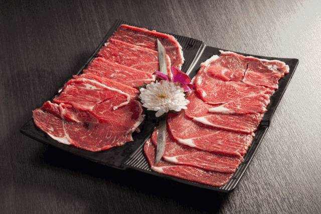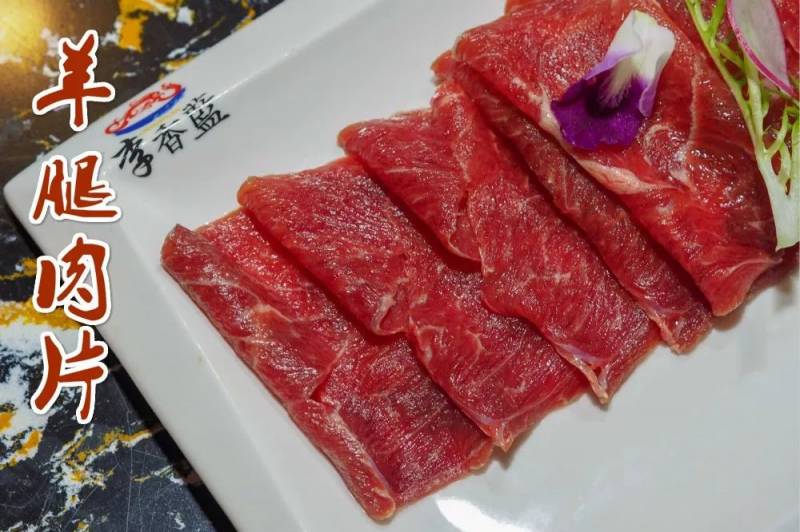 这是一盘鲜羊腿肉片,肉的厚度相对其他肉片要来的厚实。因为是羊腿,肉质更加的结实,口感更加丰富。
