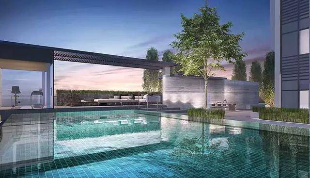 标准的现代化泳池和植物墙(green wall)被尊贵的业主们分享;