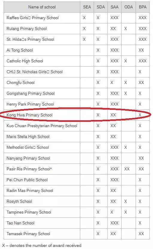【注:下图X代表获奖次数。英文缩写意思:学校杰出奖(SEA)、学校荣誉奖(SDA)、持续成就奖(SAA)、杰出发展奖(ODA)和最佳实践奖(BPA)】