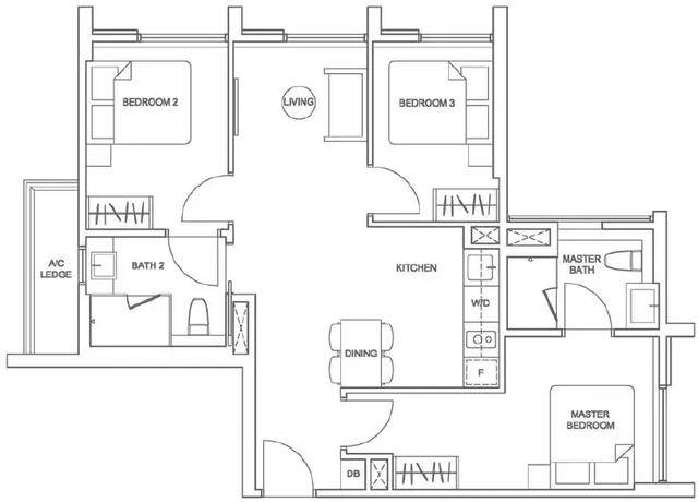 乐享时代潮流:Sixteen 35 Residences秉承当下简约实用主义的时尚理念,采用全新的无阳台、无防空壕(household shelter)设计,室内有效空间利用率为100%。