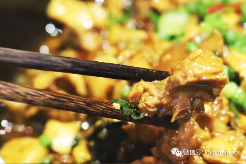 比较特色的吃法是,让干锅鸡配上嫩豆腐。