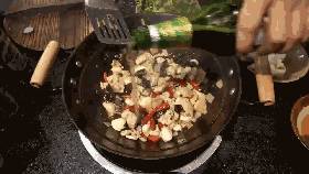 川渝版干锅柴火鸡的特别之处,在于它的做法。桂皮、香叶、满满四罐啤酒……