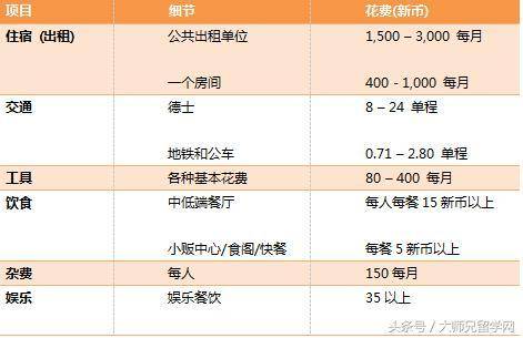 4. 理工学院留学生的学费每年约合2.5万元人民币,新加坡大学留学生目前每年的学费约合人民币7.1万元,生活费每年大约是3.5—6万人民币。