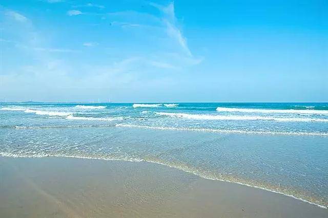 六鳌半岛有个开阔的海湾,白色的沙滩平展的延伸至大海。