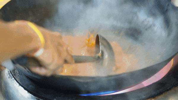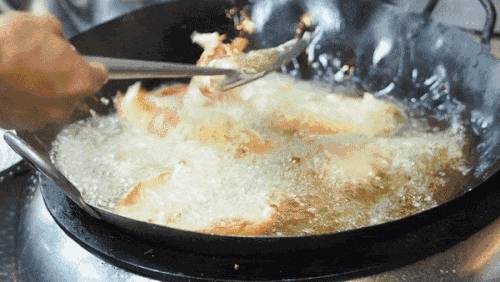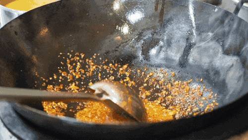 螃蟹先在加了姜葱的清水中汆烫至变红,沥干水后加入调好的酱料,猛火翻炒,这样炒出来螃蟹锅气十足。