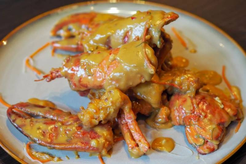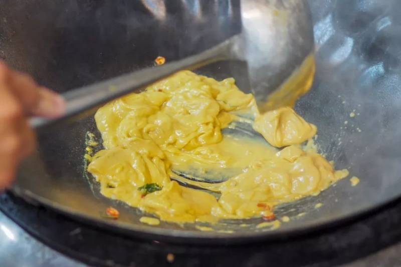 再用浓稠的秘制奶黄酱将龙虾裹住,可以想像吃的时候吮手指的幸福感了。