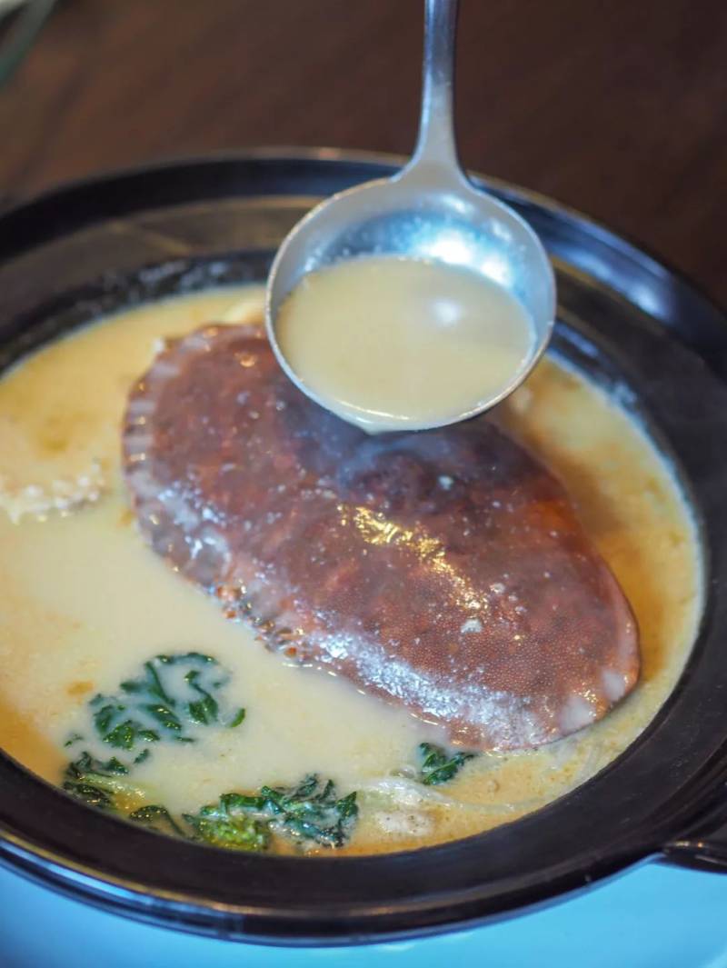 这道贵妃蟹用的是海鲜汤来汆烫面包蟹,可想而知这道蟹的鲜甜度有多高。