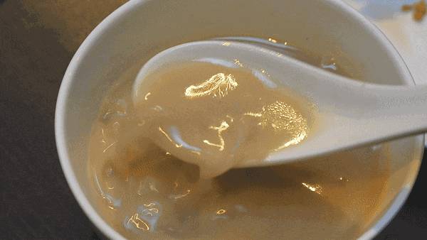 上桌之后再撒上另一部分的脆米,口感和吸满汤汁的完全不一样,双重口感。