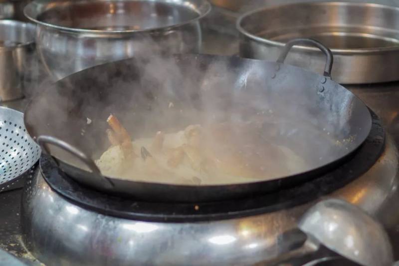 但这次到了后厨才发现完全不像以前想的那样,师傅会将辣椒和其他配料先炒香,然后加入清水熬煮。