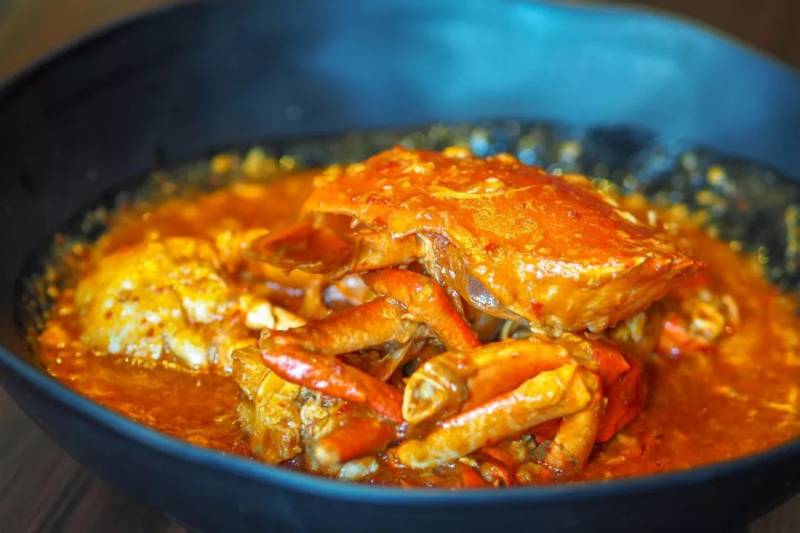 辣椒螃蟹和黑胡椒螃蟹就是完全的相反,很多人喜欢的就是辣椒螃蟹的这一份稍带酸甜的汤汁。