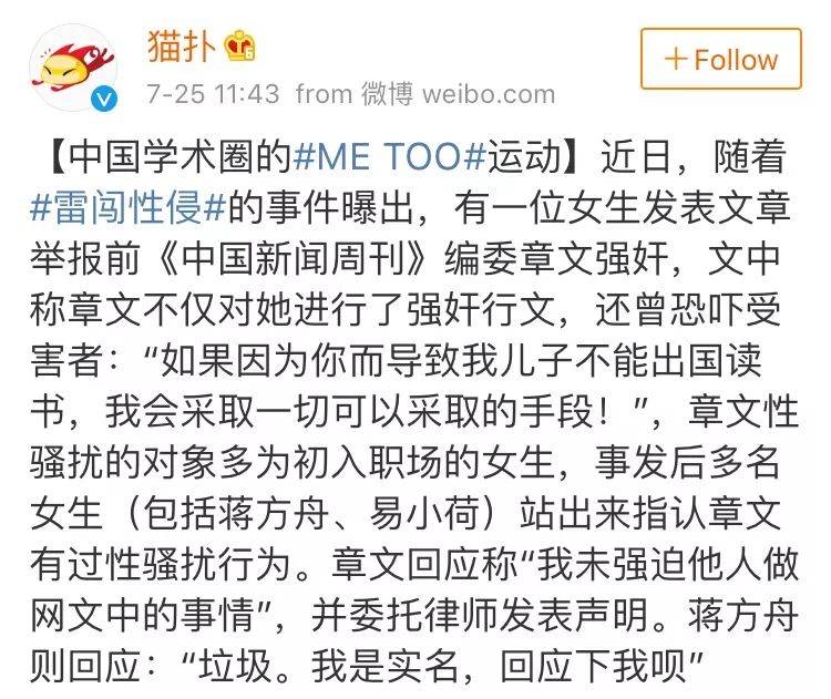 大家顺便又回顾了前段时间美国大规模爆发的#ME TOO运动,当时许多名人主动爆料自己被性侵、性骚扰的经历。