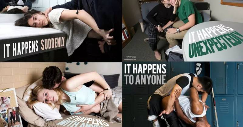 (21岁的美国女大生Yana Mazurkevich有感于在著名的史丹福学生性侵事件上的社会不公义,拍摄了一系列“It Happens”作品,反映校园性侵)