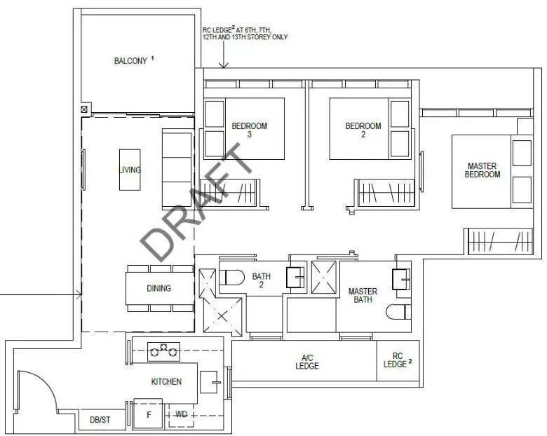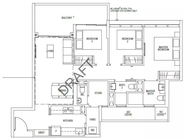 3房豪华型,106平方米/1109平方英尺,配大阳台享受漂亮河景或者小区泳池景,每个房间都够大可以放双人床,主人房就更不用说了