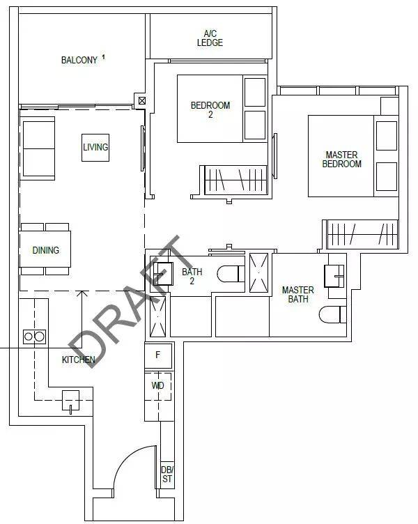 2房豪华型,68平方米/ 721平方英尺,可以改成受国人喜欢的封闭式厨房,房间都可放置双人床