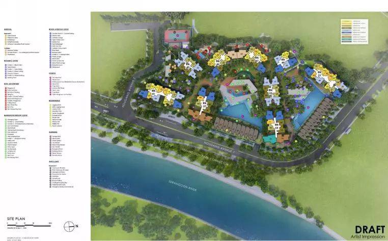 该项目由新加坡著名的设计公司ADDP公司打造,ADDP设计公司也是杰克君所喜欢的,小区多达101项公寓配套设施,相比一般的公寓是50项配套设施是数量直接翻倍了,有没有很爽哦。设计师打造为三个主题区,Botanic Cove, Mangrove Resort Cove和River Lifestyle Cove,其中Mangrove Resort Cove区的公寓会所有大餐厅,还有KTV/家庭影院,中央大泳池。River Lifestyle Cove区有长达75米的大泳池。除了三个主题区,还有三个不同主题的公寓会所和五个不同主题的户外花园,400米的散步跑道,网球场和一个篮球场等等。(设施实在太多就不一一介绍了)