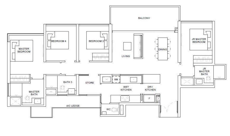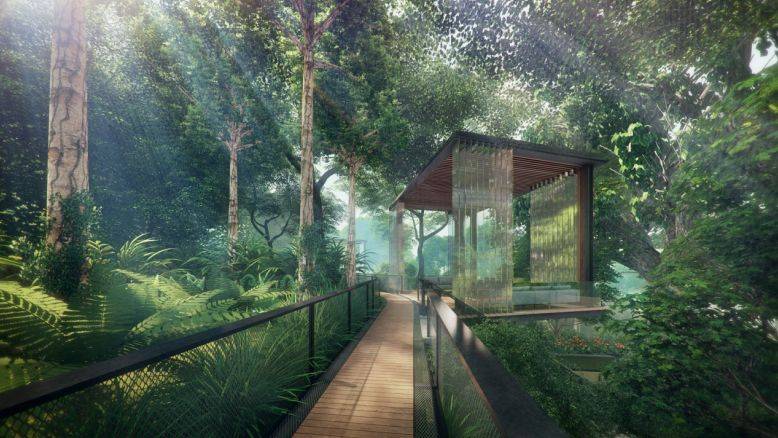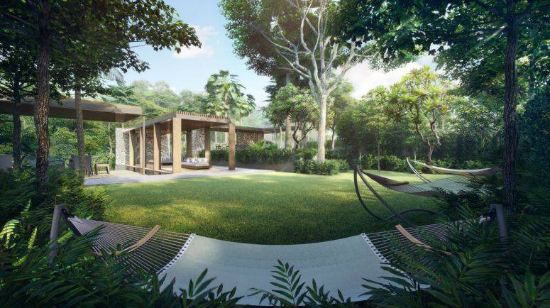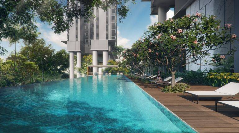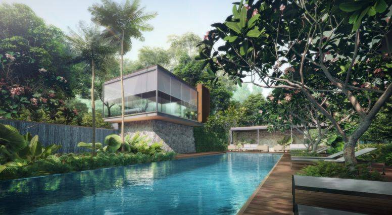 由于项目占地面积大,多达21100平方米,采用大柱子15米挑高的设计,这样保证80%地面都可以用来做小区配套设施、绿化等,多达80种公寓配套设施供业主使用,拥有多达7个泳池和热带雨林景观。一共有三栋楼,所有单位都是南北向,采用平行的建筑设计,无呼吸阻挡,视野开阔,180度景观,有四种不同的景观,中央商业区景观,南部山脊景观,海景,武吉知马景观。