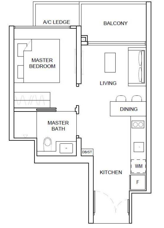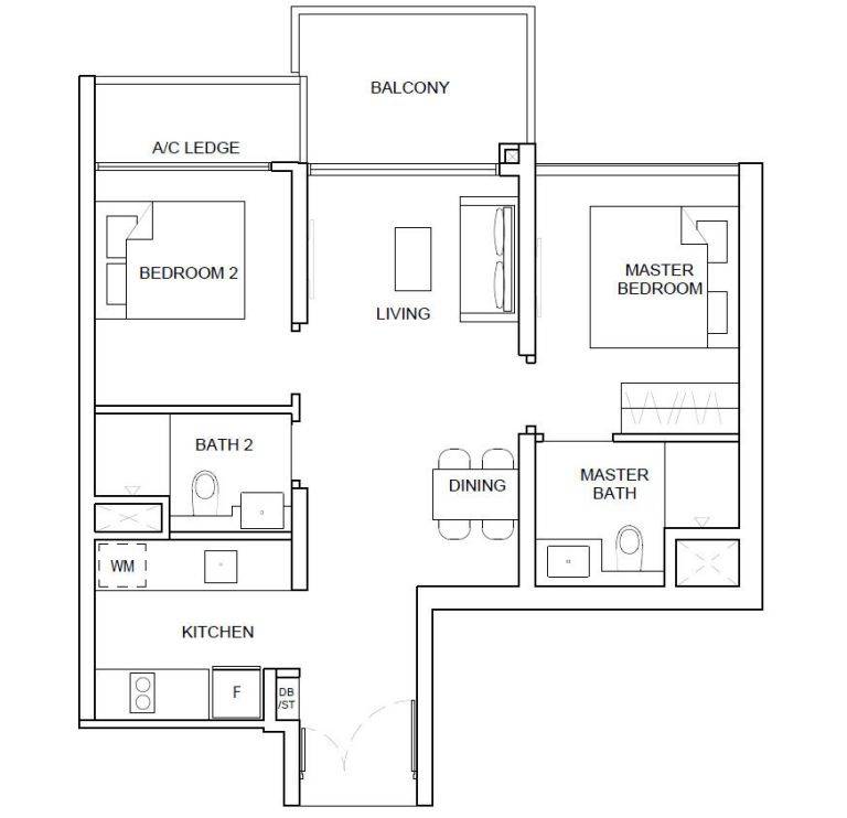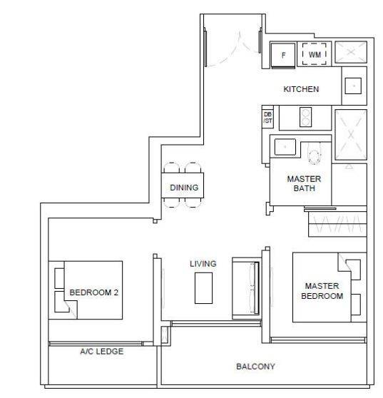 2房普通型,面积介于624~872英尺,有三种不同户型,带封闭式厨房,价格106.5万起