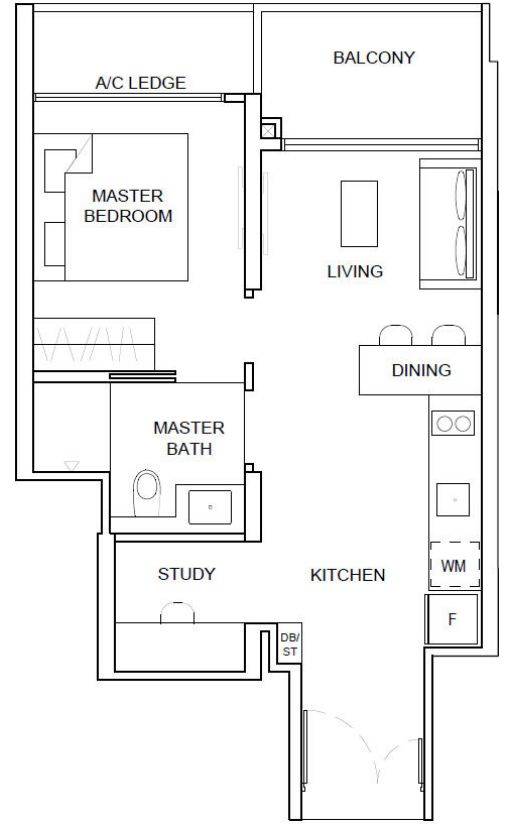 1+书房户型,47平方米/506平方英尺,带一个小书房,价格93.8万起