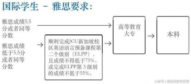 · 顺利完成JCU新加坡校区英语语言预备课程(ELPP)第二个级别,且成绩不得低于75%,或完成ELPP第3级别的成绩不低于55%。