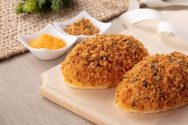 新加坡国庆节,本土品牌BreadTalk怎么可能不推出新产品。他们在经典的肉松面包上变了花样,添加了咸蛋口味。