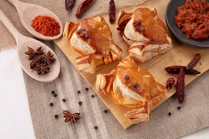 除了咸蛋肉松流沙面包外,BreadTalk还推出了另两款新加坡美食口味:辣椒螃蟹泡芙还有猫山王榴梿迷你可颂。