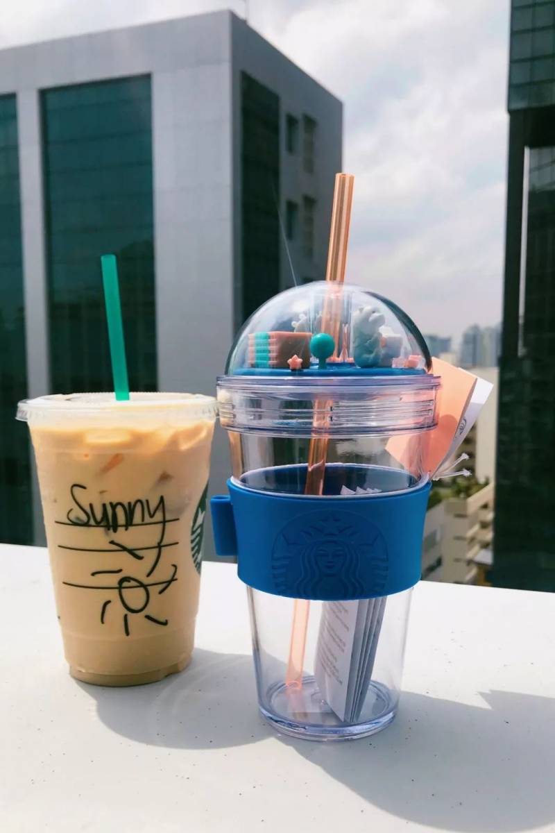 除了各个美食品牌推出国庆相应的美食之外,我们的星爸爸也推出了各款新加坡国庆杯。蓝色和粉色的搭配,有种带你回到童年的感觉。