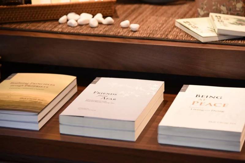 静思书轩大约有80平方米。各类好书整整齐齐地放在书架上,一旁就是可供休憩的茶座。书轩的装潢结合了东方禅意与现代简洁感,让人一进来,心就静下来了。
