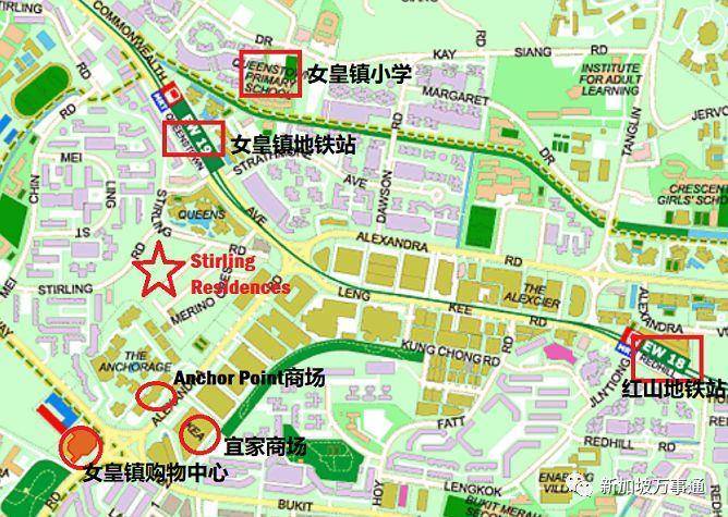 Stirling Residences的具体位置,距离女皇镇地铁站300米左右。
