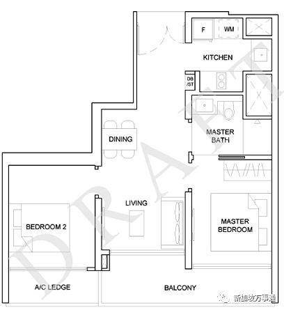 两室一厅户型面积介于58-91平米之间,厨房可封闭,适合中式烹饪的家庭下面的两室一厅一卫户型,面积58平米(624平方尺),2楼最新定价:106万3千新币。