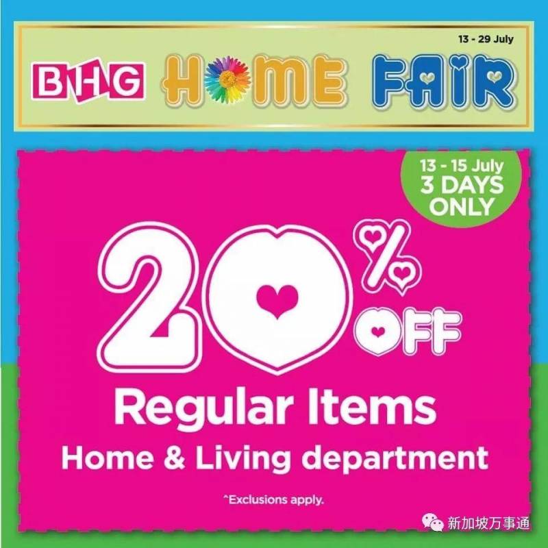 BHG的家居用品现在有20%的折扣,折扣时间有限,大家一定要抓紧时间。