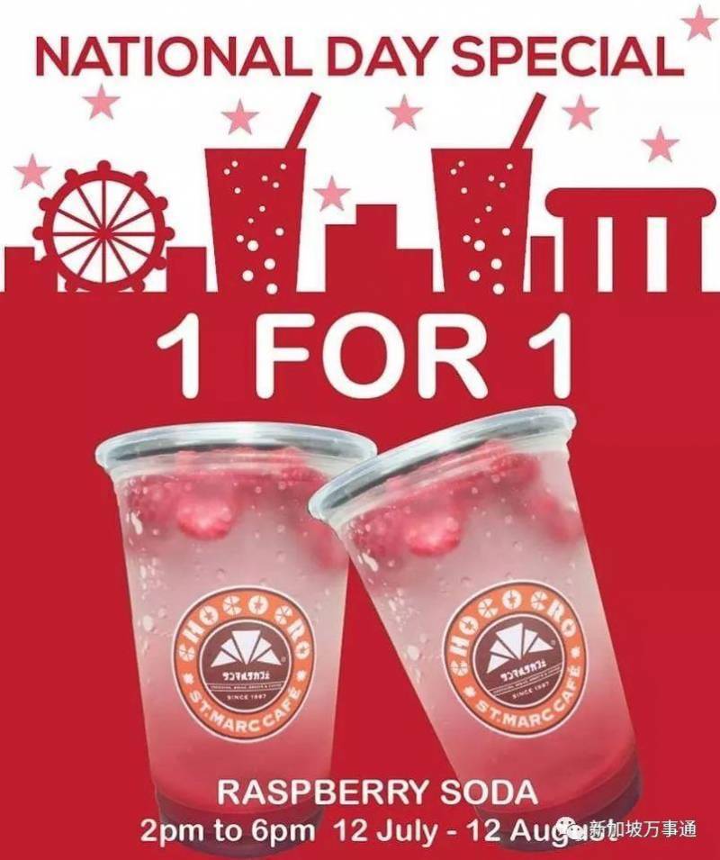 下午2点到6点之间,在St Marc Cafe购买覆盆子苏打水,享受买一送一的超值优惠哦!