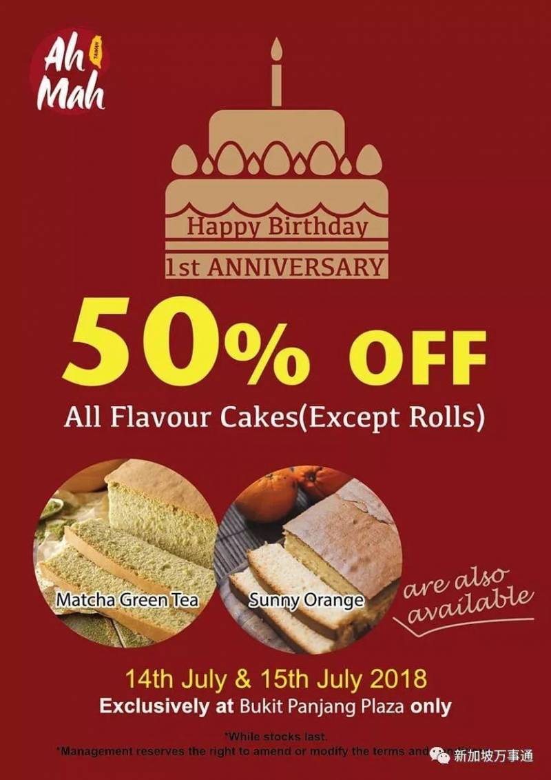 Ah Mah周年庆戚风蛋糕享受半价~有两种口味,抹茶和橙子,喜欢吃经典蛋糕的小伙伴们不要错过呀!
