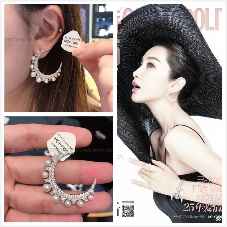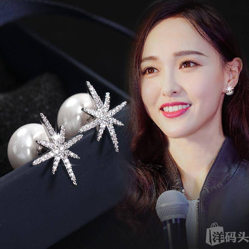 唐嫣带过的这款耳后有珍珠的八角星耳环