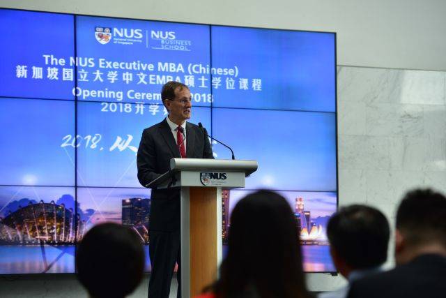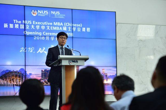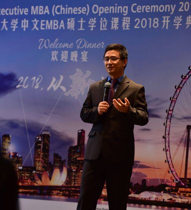 新加坡国立大学商学院副院长(研究生学院)武耀恒教授的主旨演讲落点在学院可为同学们提供的教学服务,武耀恒教授指出:“新国大EMBA课程,不仅提供常规的课堂学习体验,还引入三个教学计划,即问题导向式学习、体验式学习、变革式学习,三个计划横跨三大洲的7个城市,让同学们可以接受来自世界各地的许多新观点,新知识,新想法,拥抱未来的无限可能。”