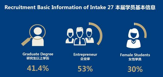 自2017年下半年以来,招生团队足迹遍及4个国家,19个城市,共举办了26场宣讲会。经过一系列严格的评估、材料审核、面试、笔试,最终70余位来自各行各业的申请者脱颖而出,正式加入中文EMBA的大家庭。