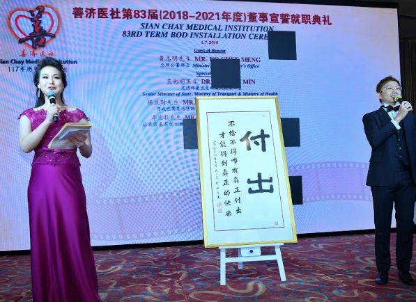 现场特别感动的是千禧集团酒楼的董事经理符祥安先生,当晚将三万元的餐饮费全部捐回给善济医社。