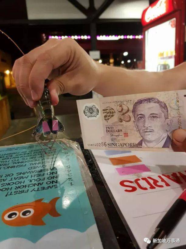 他们也是有奖励制度的,所以你会更有动力钓虾——如果你足够幸运,抓到一只做着标记的虾,你会得到10新元的现金。