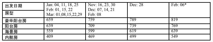 4、 以上船票未含:岸上观光游费用及其他个人消费。