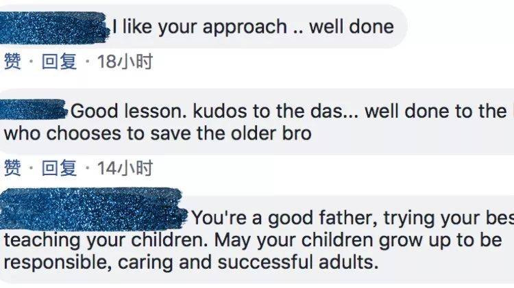 (网友说,你是个非常好的父亲,尝试用最好的方式教导孩子,愿你的孩子成长为有责任、有爱心的成年人。)