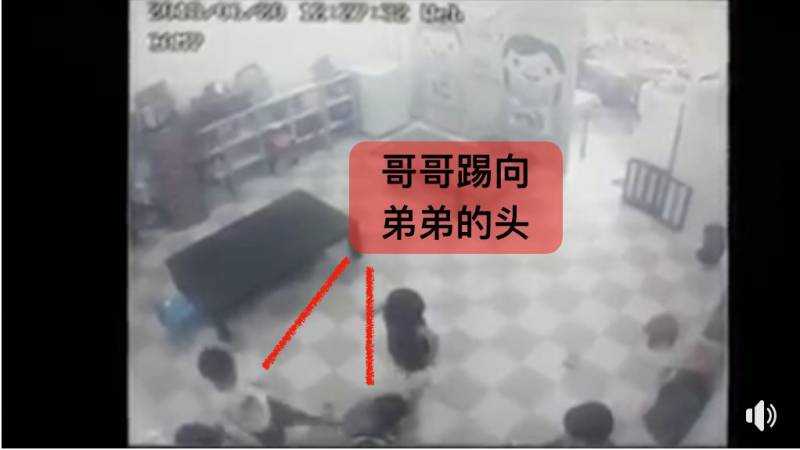 在补习班摄像头拍到的画面中,穿白衣的哥哥,狠狠踢向弟弟的头,连踢两脚。路人看了都心疼……