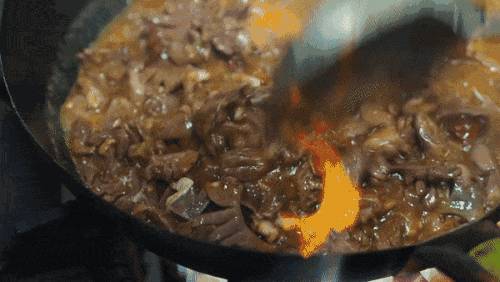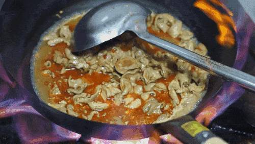 腌制过的鸡杂,用大火反复翻炒到入味。炒完的鸡杂辣中带着微酸,让人觉得非常开胃。