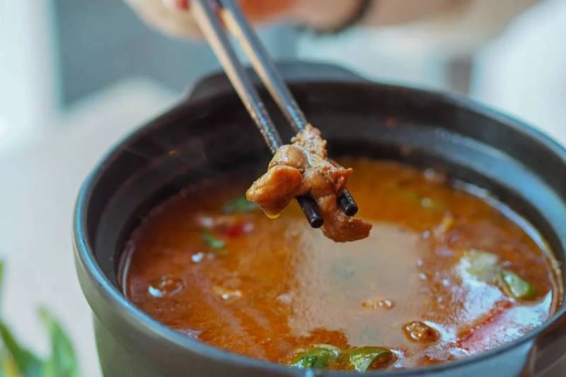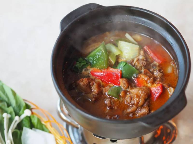 嫩滑的鸡肉经过慢煮后完全入味,香味辣味越煮越浓。这样一锅暖心一人份的鸡公煲能让你吃上好几碗白饭。