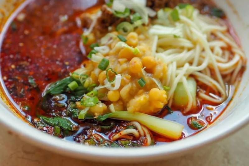 一口里面有香辣的臊子、绵密的豌豆和有嚼劲的面条,给你一种温顺舒服的感觉。
