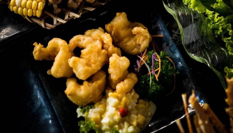 水果沙拉虾球:夏日的美味水果和新鲜的虾仁结合,咸鲜酥脆、清爽香甜。