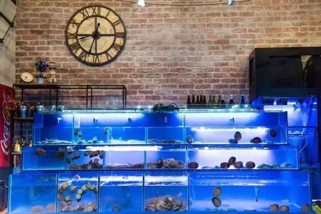 整齐摆放的鱼缸供养著鲜活的海鲜