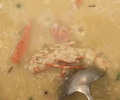 文火慢熬静待龙虾的鲜味完全沁入粥里
