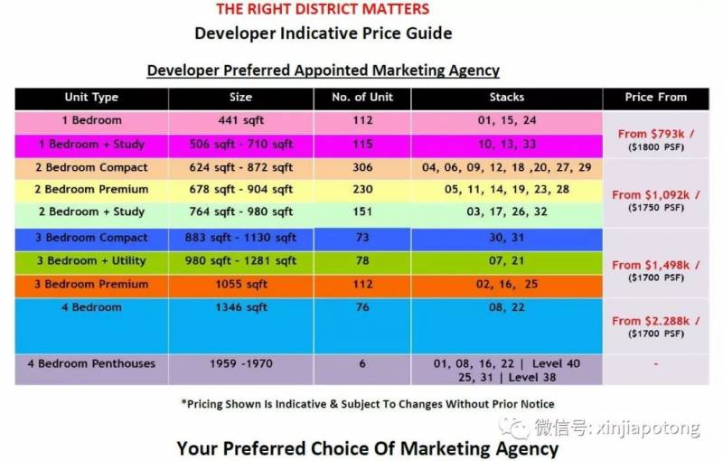 从下图可以看出,总共1259个单位,有1房,1+书房,2房普通型,2房豪华型,2+书房,3放普通型,3房豪华型,4房,不同户型供大家选择,适合投资或者买来自住。